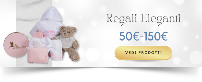 Celebrare la nascita di un bambino è sempre un’occasione speciale. Con i nostri regali per neonati sarà ancora più memorabile. Se una persona cara o un familiare ha avuto un bambino, ti offriamo un'ampia gamma di regali per neonati personalizzati con il nome o una breve dedica. Questo renderà il regalo ancora più speciale. Se invece desideri fare un regalo aziendale di nascita per congratularti con un collega, disponiamo di prodotti pensati appositamente per le aziende che vogliono inviare ceste ai dipendenti che sono diventati genitori. Puoi stampare il logo dell’azienda sull’orsetto incluso nella cesta e anche ricamare il nome del bambino sui capi scelti. Ciò che inizialmente può sembrare un semplice regalo di congratulazioni si trasforma in un dono personalizzato che farà sentire il dipendente speciale e apprezzato sia dall’azienda che dai colleghi.