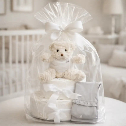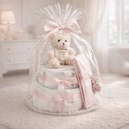 Torta di Pannolini con Succhietto Personalizzato, Custodia e Orsetto di Peluche